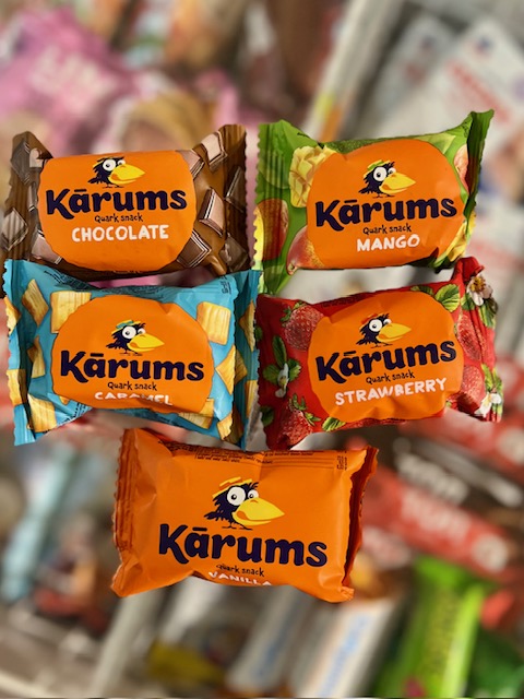 Karums Kwark snacks in chocolade glazuur in verschillende smaken